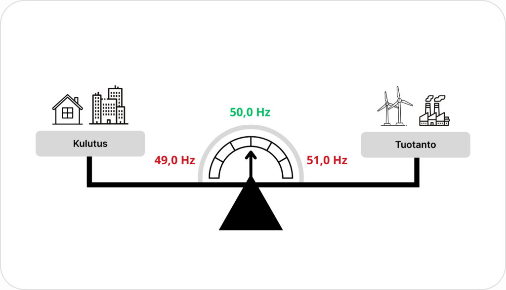 Yksi Suomen sähköverkon elinehdoista on tasapaino eli sähkön kulutuksen ja tuotannon on oltava yhtä suurta joka ikinen hetki. Tätä tasapainoa mitataan taajuudella, joka on täydellisessä tasapainotilassa 50,0 Hz. Jos sähköä kulutetaan enemmän kuin tuotetaan, taajuus laskee, ja tuotannon ylittäessä kulutuksen, taajuus nousee. Normaalitilanteessa taajuuden sallitaan vaihdella 49,9 Hz ja 50,01 Hz välillä. Suuremmat taajuusvaihtelut voivat aiheuttaa häiriöitä sähköverkkoon, kuten sähkökatkoksia ja vaurioita sähkölaitteisiin. Suomen sähköverkon tuotantoa ja taajuuden vaihtelua voi seurata reaaliaikaisesti täällä.