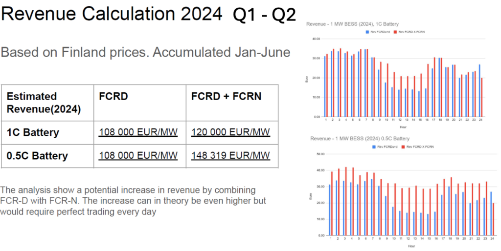 Suurin osa korvauksesta maksetaan akun käyttövalmiudesta, ei käytetystä energian määrästä. Akku saattaa purkaa sähköä vain sekuntien ajan, joten todellisuudessa käytetty energian määrä on pientä. (Esim. jos 12kWh akkua käytetään reservissä 30 sekunnin ajan 12kW teholla, on kuluneen energian määrä 0,1kWh)